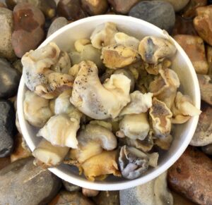 Fresh Whelks, another firm favourite on all shellfish bar counters. Served with vinegar and pepper direct from Kent.