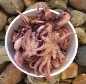 Linda cooks the octopus & squid here almost daily during the peak season. It is marinated with red wine vinegar and lots of herbs & spices