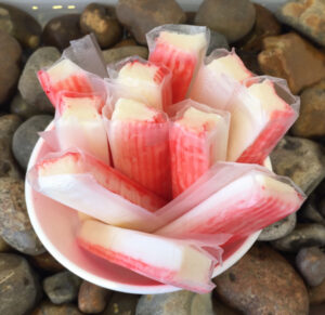 Some call it a crabstick, but it is a fish stick with crab flavouring. A great favorite with kids & adults alike.